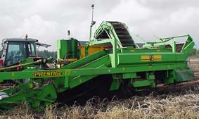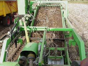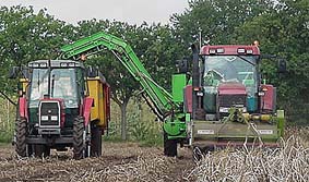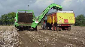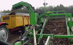 Na het rooien gaan de aardappelen over een sorteermachine, waar de slechte aardappelen en de vuiligheid (steentjes enz.) machinaal en