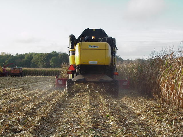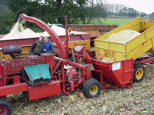Voor inkuildoeleinden wordt maïs met stengels en kolven in groene of in rijpe toestand met behulp van de veldhakselaars geoogst.