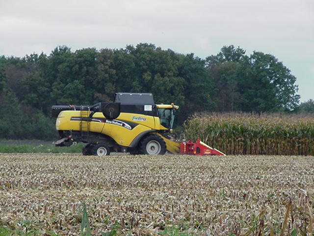 Ook met een gewone maaidorser kan mais geoogst worden. Een voorzetstuk met kettingen brengt de stengels naar het maaigedeelte waarna deze net als bij graan de machine passeren, uitgedorst en geschoond worden.