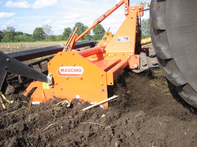 De hier gebruikte Maschio frees (type BI) heeft een maximale werkdiepte van 27 cm.