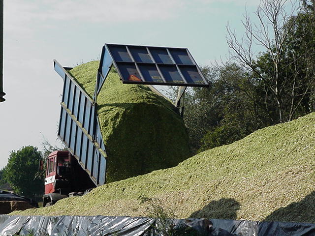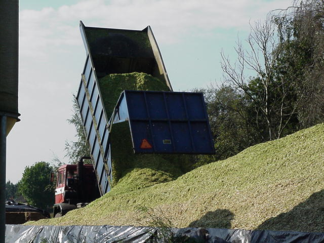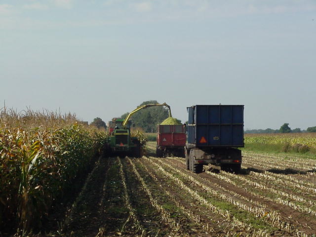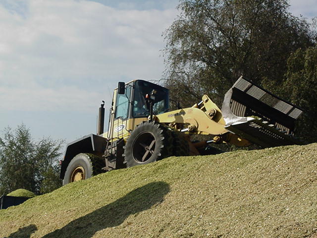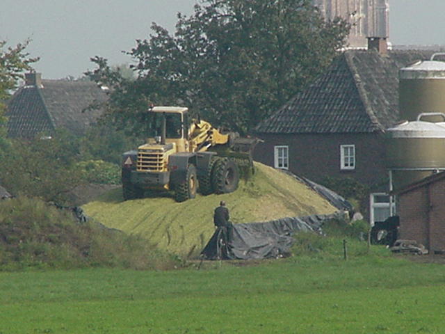 Hieronder ziet u een foto-impressie van het hakselen en het aanrijden van de maïskuil met een shovel.