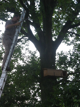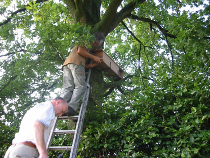 De eerste plaatsing van een Steenuilenkast door de werkgroep bij de familie v Rijsingen (30 juni 2005)