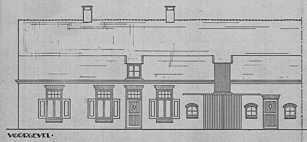 -De tekening is niet compleet: het rechter stalgedeelte ontbreekt, maar er zijn wel gearceerde lijnen getekend: