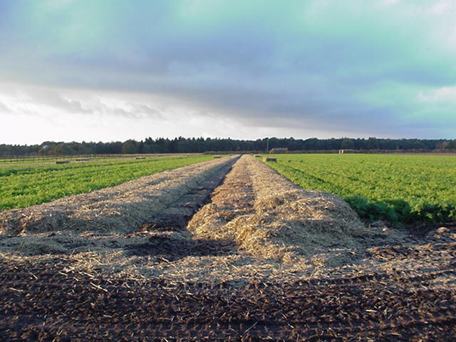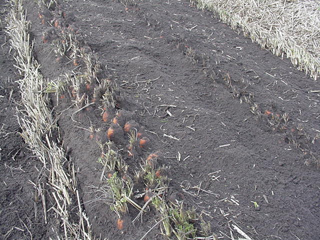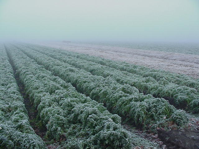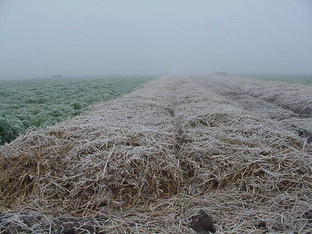 Om te voorkomen dat er vorstschade optreedt is ter bescherming tegen de winterkou een dik stro-bed, +/-45 ton stro per hectare, over de wortelen heen gelegd. Het aanbrengen van het stro gebeurt met een zogenaamde “strodekmachine”. Deze machine is over een tractor heen geconstrueerd en er kunnen “grootpakbalen” van 1.20 meter breed mee verwerkt worden. (zie fotocollage wortelteelt)